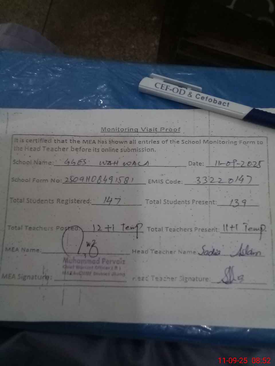 | EMIS Code: 33220147 | Name of School: GGES WAH WALA | |||