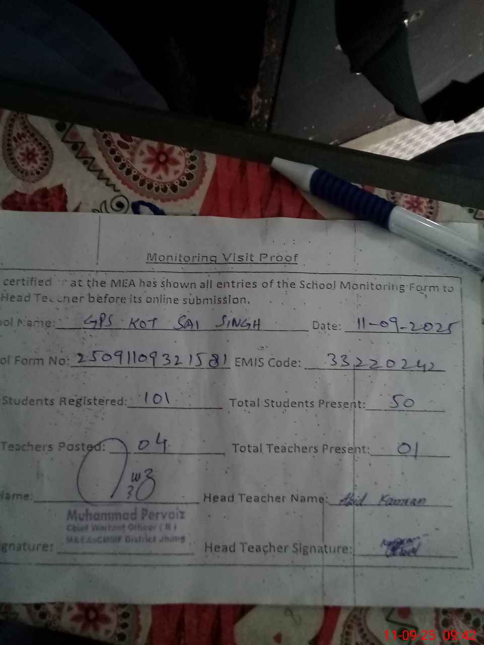 | EMIS Code: 33220242 | Name of School: GPS KOT SAI SINGH | |||
