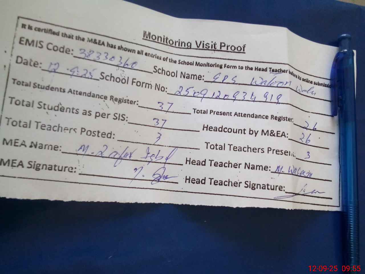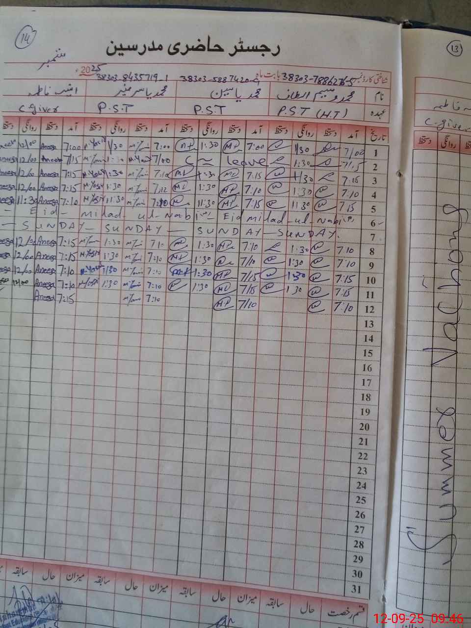 | Name: Mu**** Wa**** Al**** Designation: (School Headmaster's/Headmistress's) PST Phone/Cell Number: 03**** |