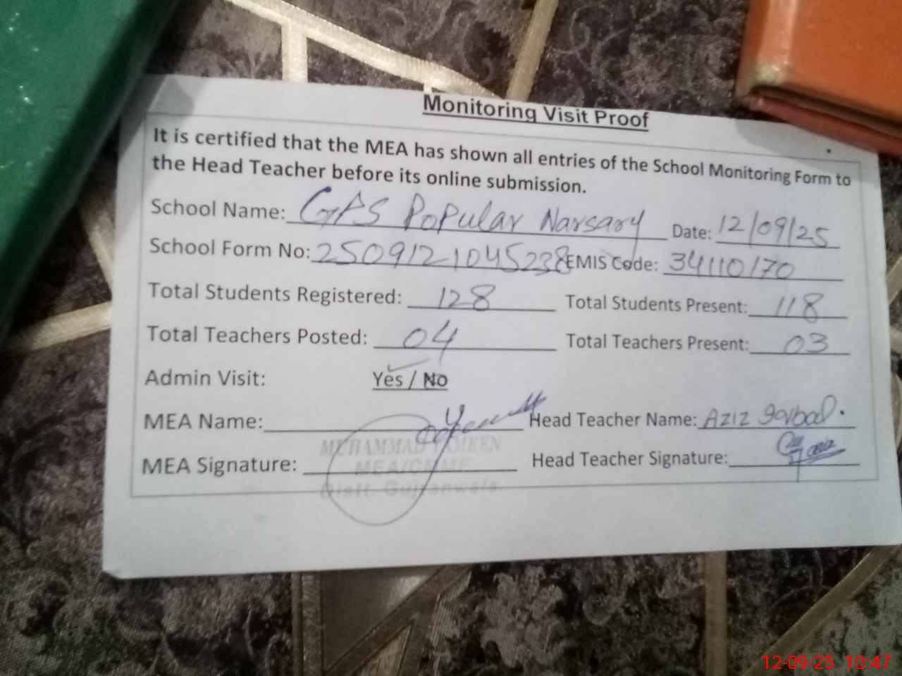 | EMIS Code: 34110170 | Name of School: GPS POPULAR NURSARY | |||