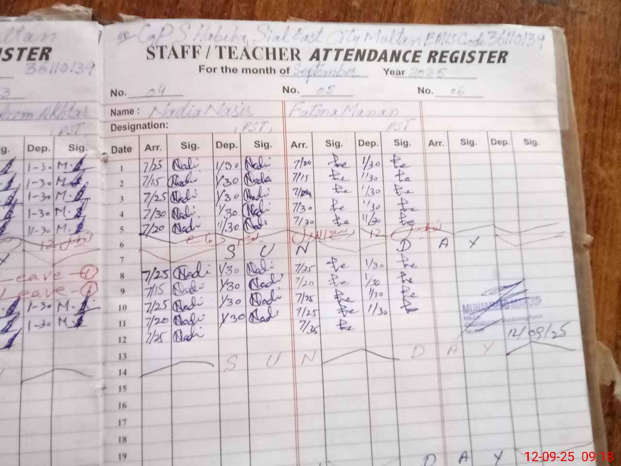 | CNIC | Full Name | Designation | R/C | Absence During Last Calender Month |
