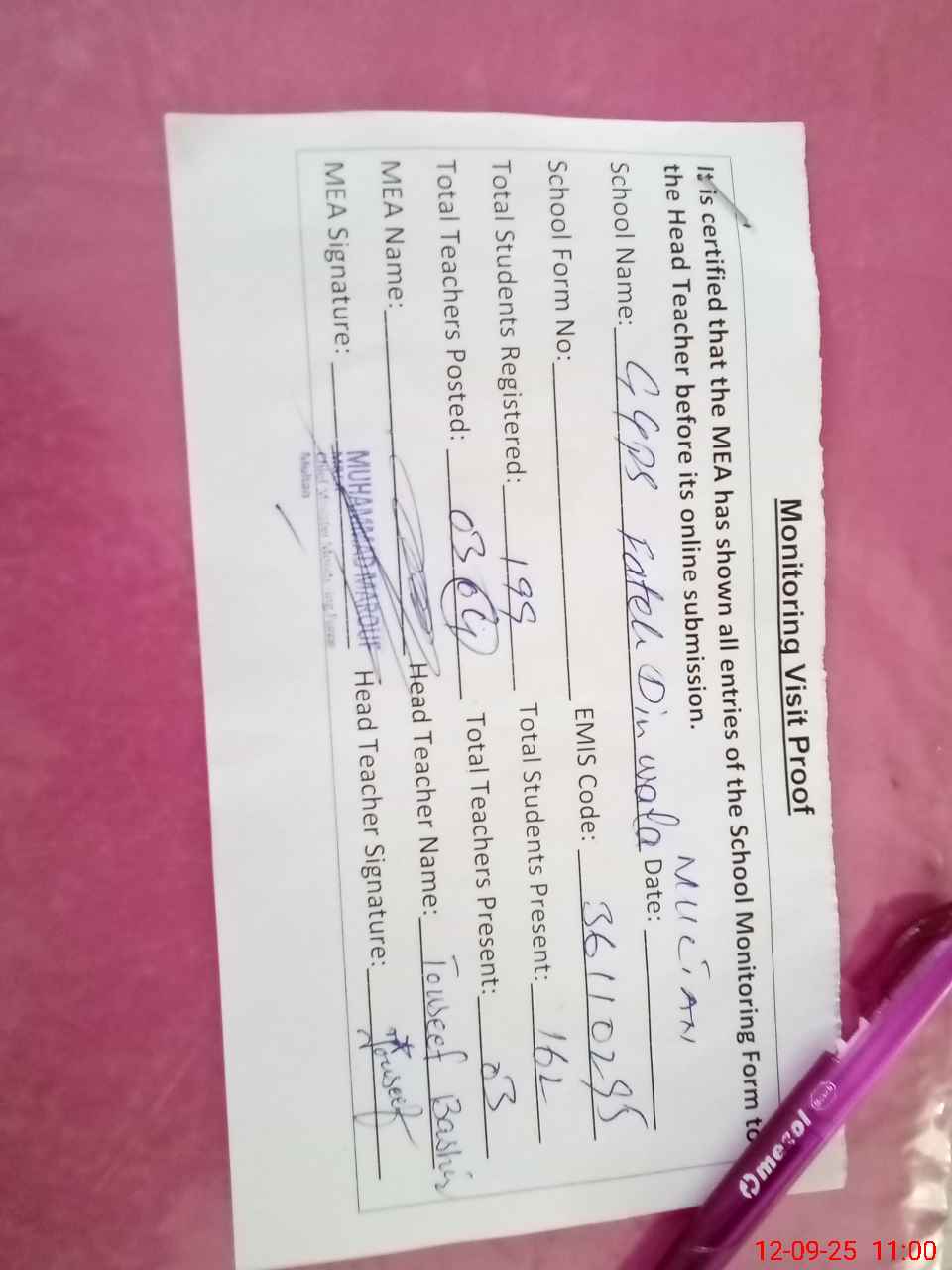 | EMIS Code: 36110295 | Name of School: GGPS FATEH DIN WALA | |||