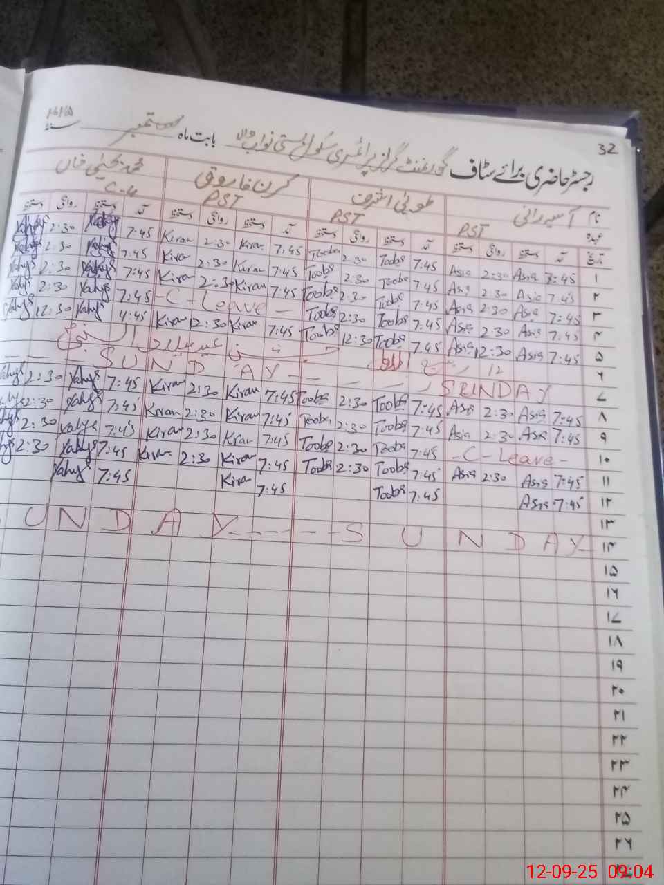 | CNIC | Full Name | Designation | R/C | Absence During Last Calender Month |