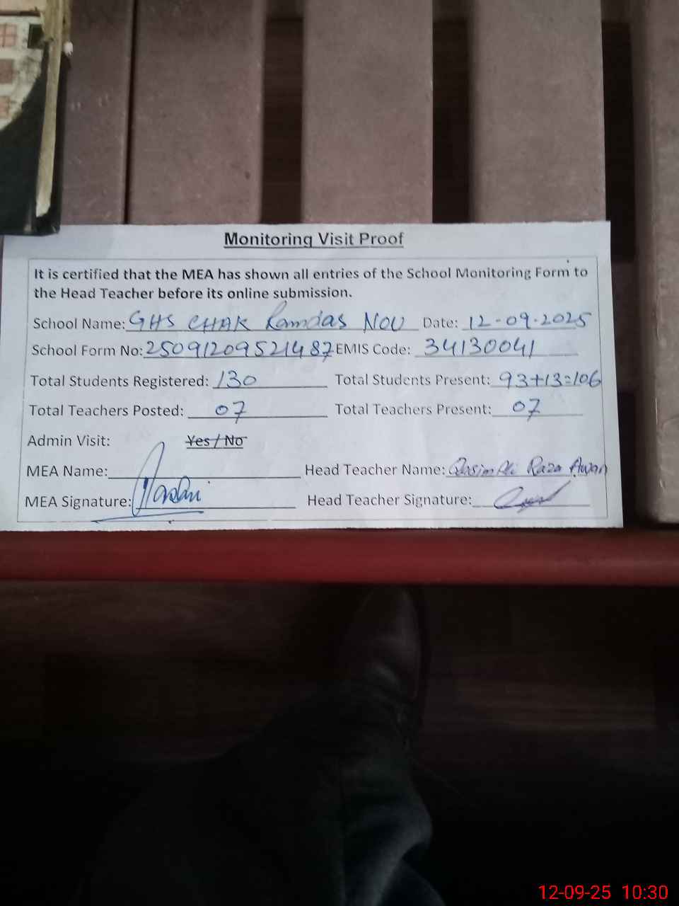 | EMIS Code: 34130041 | Name of School: GHS CHAK RAMDAS NOU | |||
