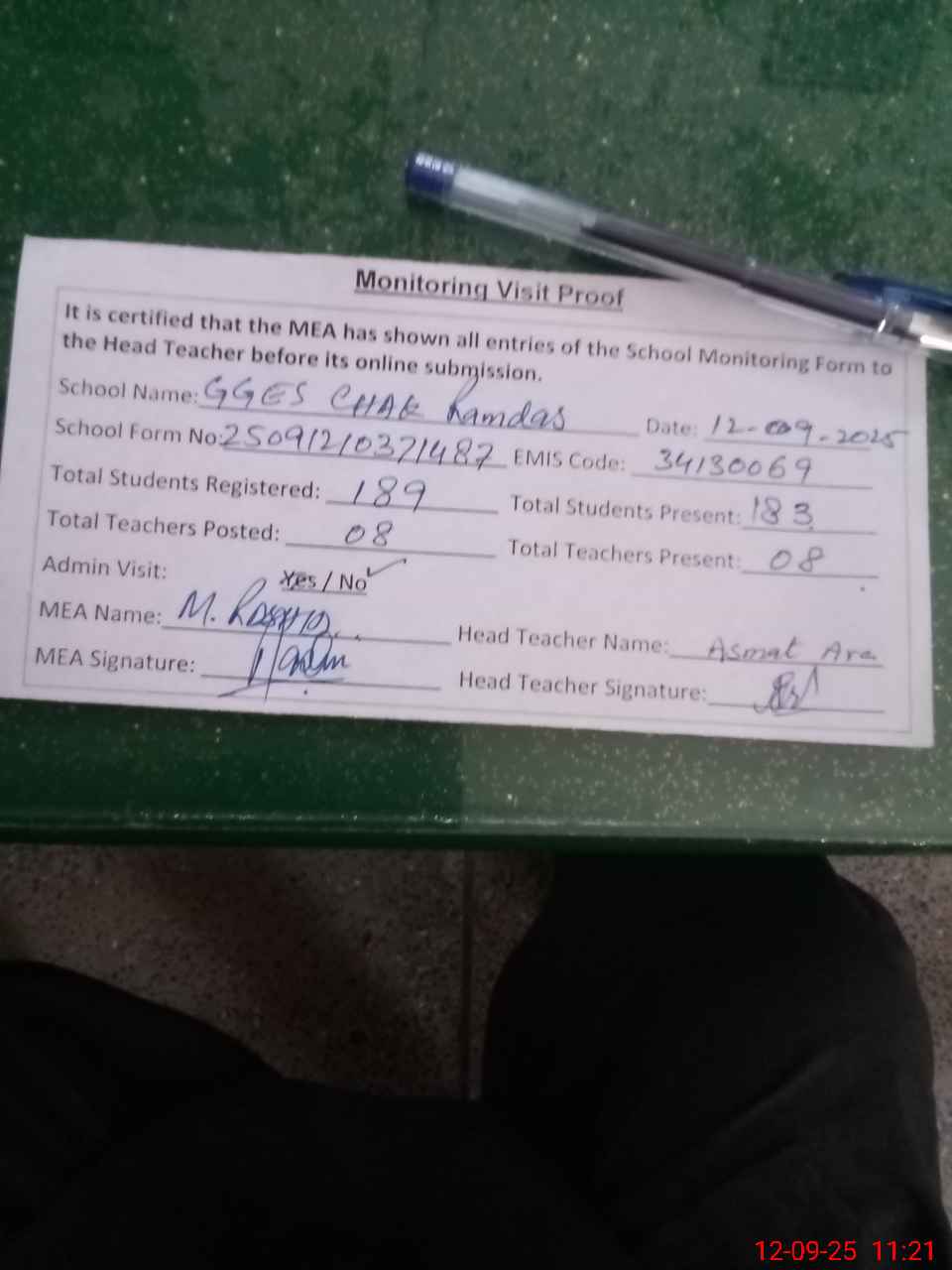 | EMIS Code: 34130069 | Name of School: GGES CHAK RAMDAS | |||