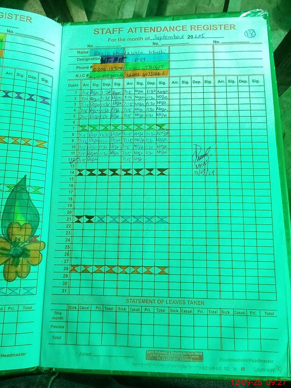 | Name: Na**** Kh**** Designation: (School Headmaster's/Headmistress's) PST Phone/Cell Number: 03**** |