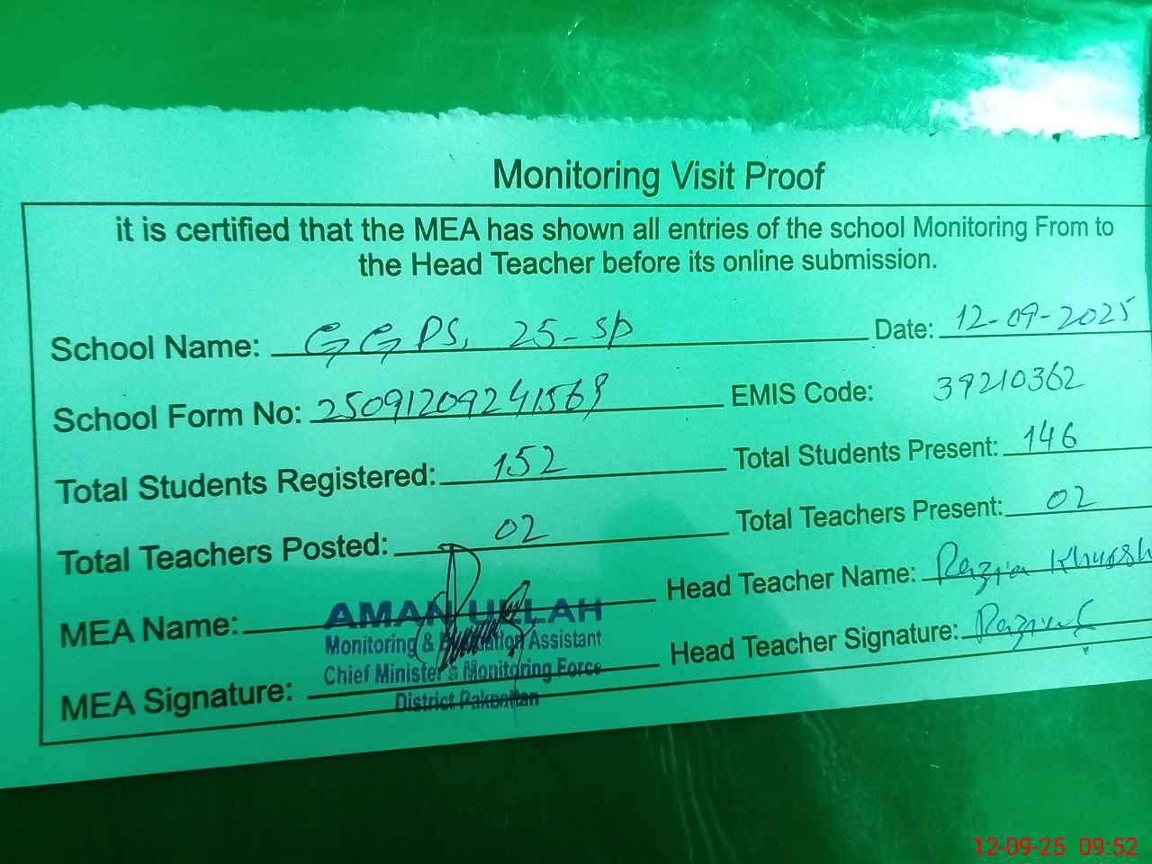 | EMIS Code: 39210362 | Name of School: GGPS 25/SP | |||