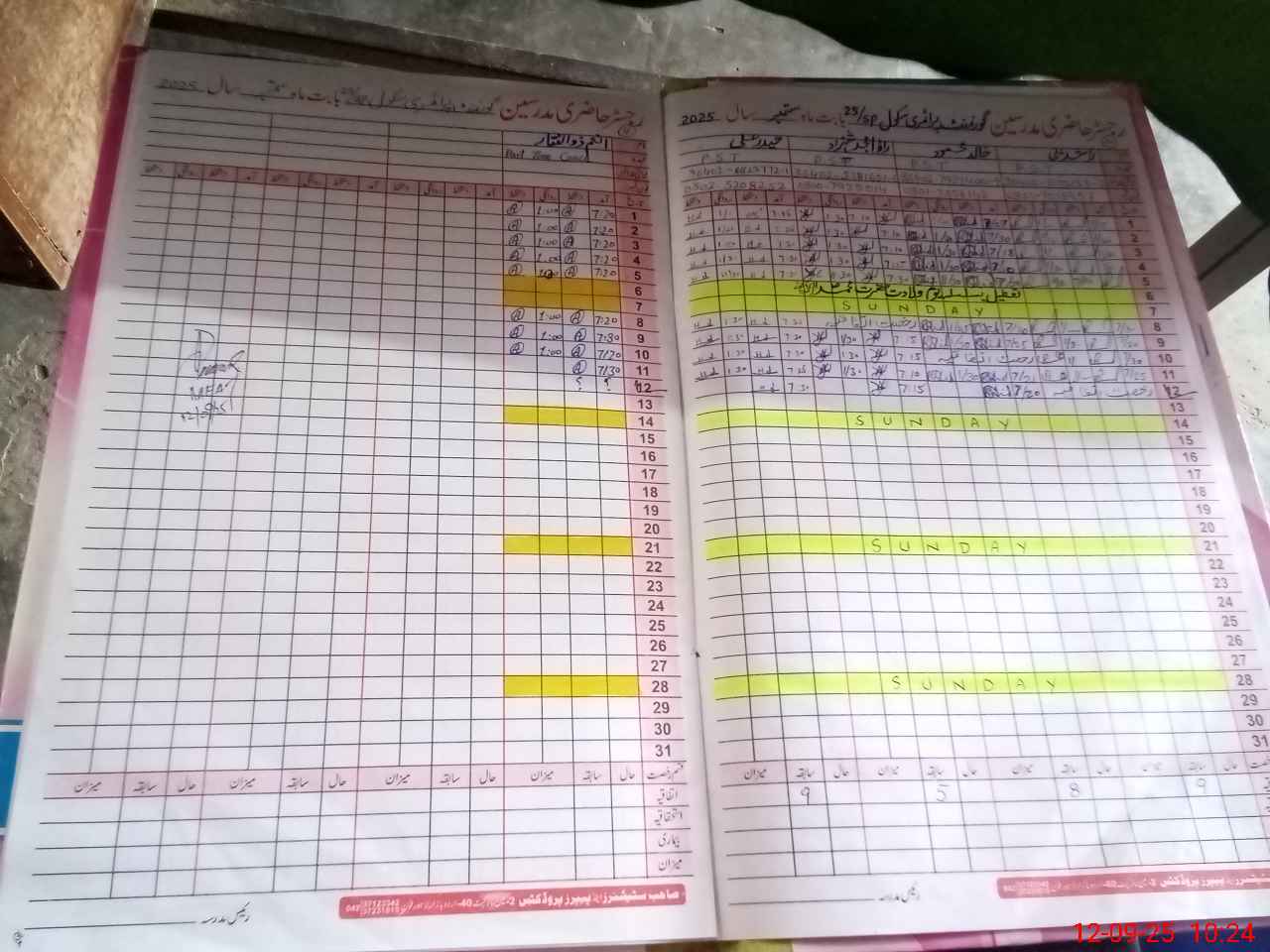 | CNIC | Full Name | Designation | R/C | Absence During Last Calender Month |