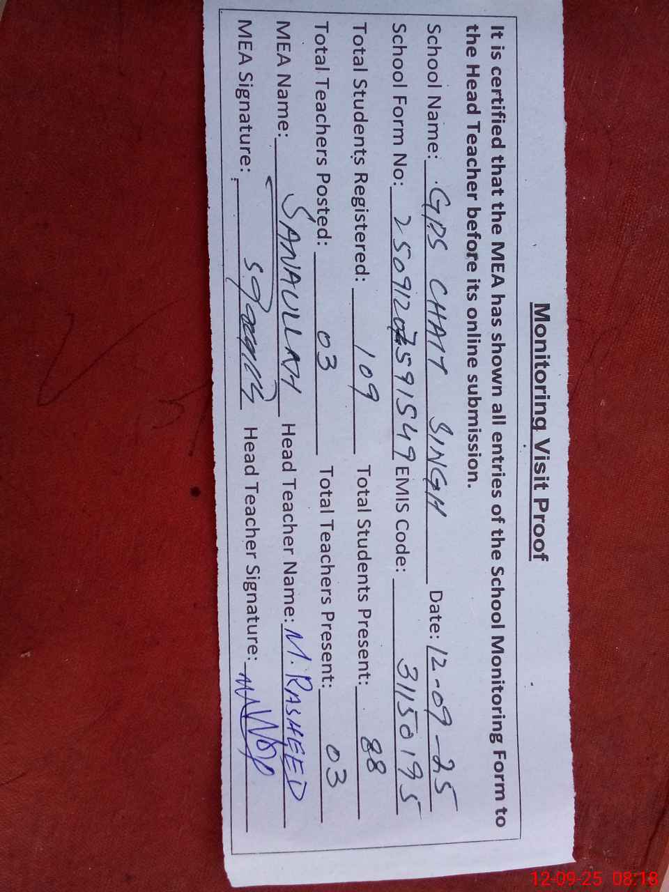 | EMIS Code: 31150195 | Name of School: GPS CHAIT SINGH | |||
