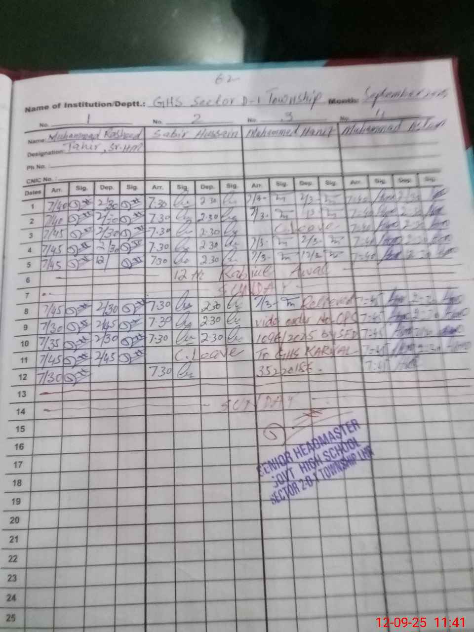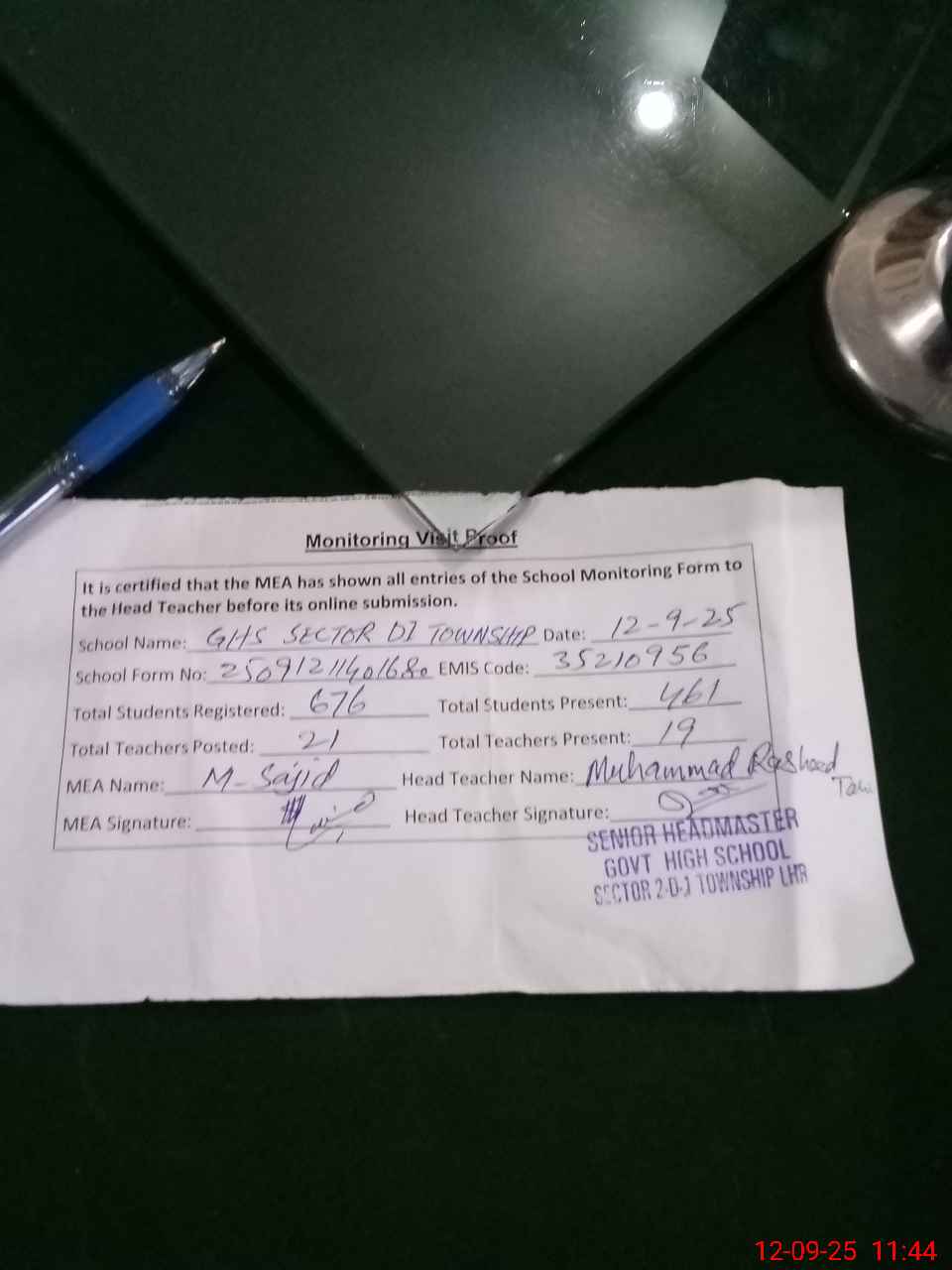 | EMIS Code: 35210956 | Name of School: GHS SECTOR D-1 TOWNSHIP | |||