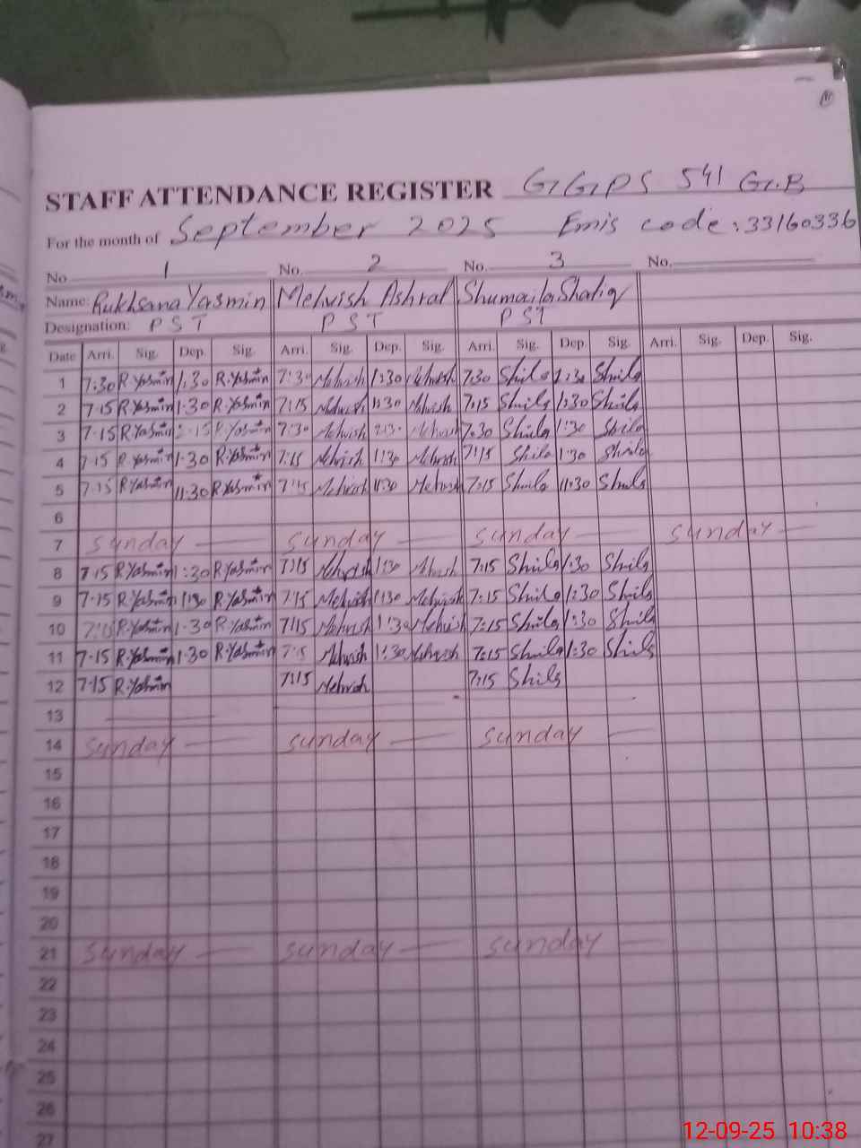 | Name: RU**** YA**** Designation: (School Headmaster's/Headmistress's) PST Phone/Cell Number: 03**** |