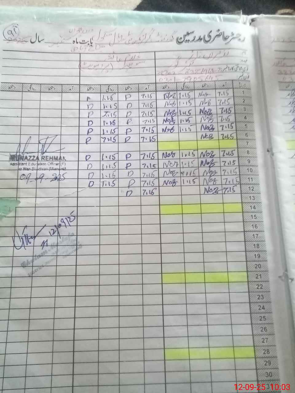 | Name: RI**** BI**** Designation: (School Headmaster's/Headmistress's) SSE Phone/Cell Number: 03**** |
