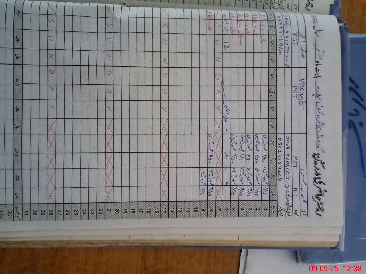 | CNIC | Full Name | Designation | R/C | Absence During Last Calender Month |
