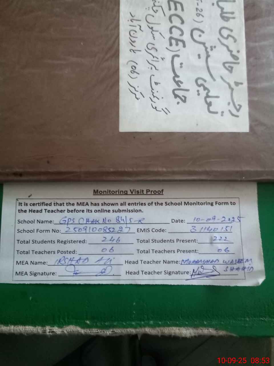 | EMIS Code: 31140151 | Name of School: GPS CHAK NO 84/5-R | |||