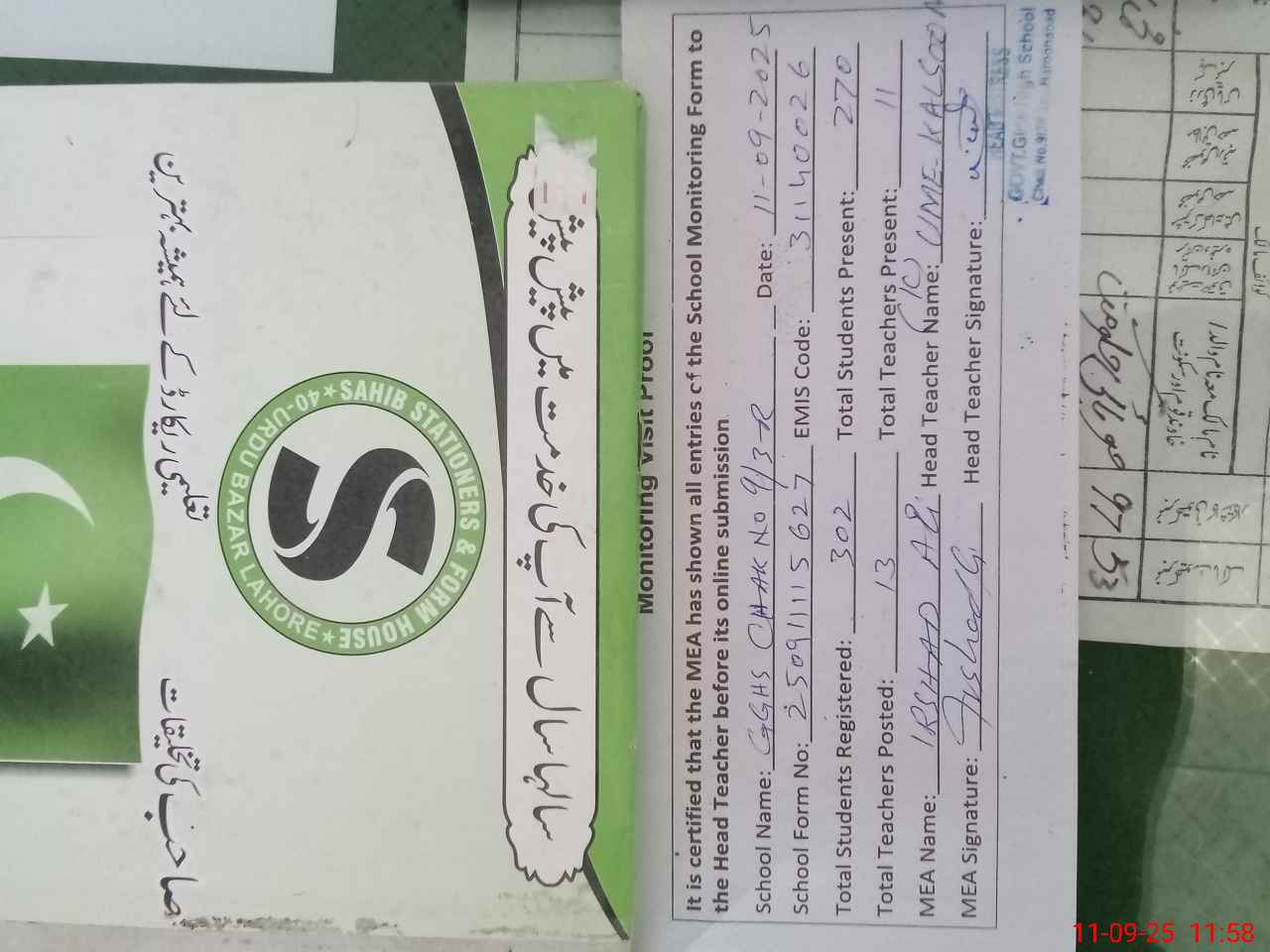 | Attendance Register | Head Teacher | MEA with School | Visit Proof |