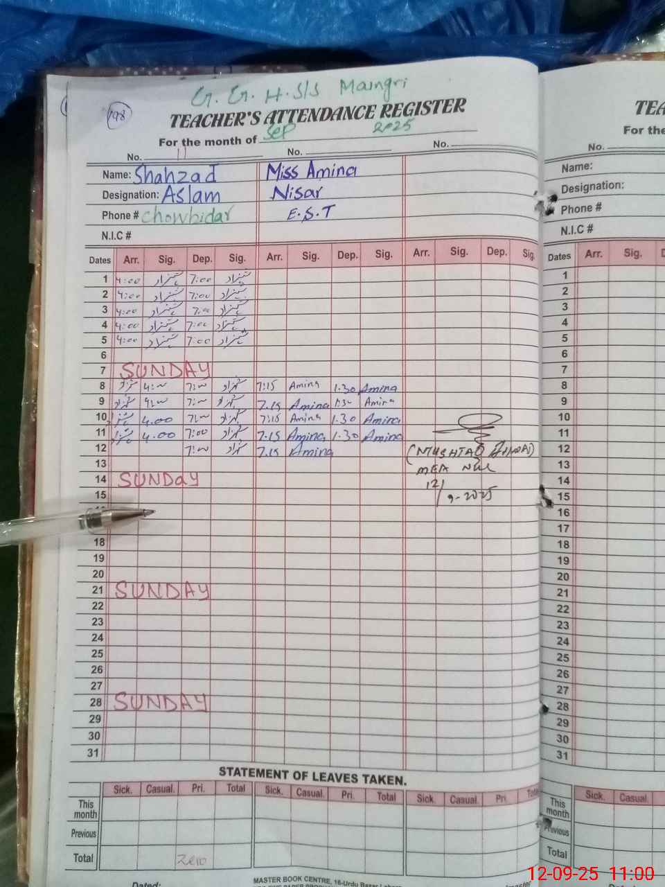 | 34**** | Aa**** Mu**** | JC | 0 | 0 | 0 | 0 | 0 | 0 | 0 | 0 | 0 | Absent (Un-Authorized) | |