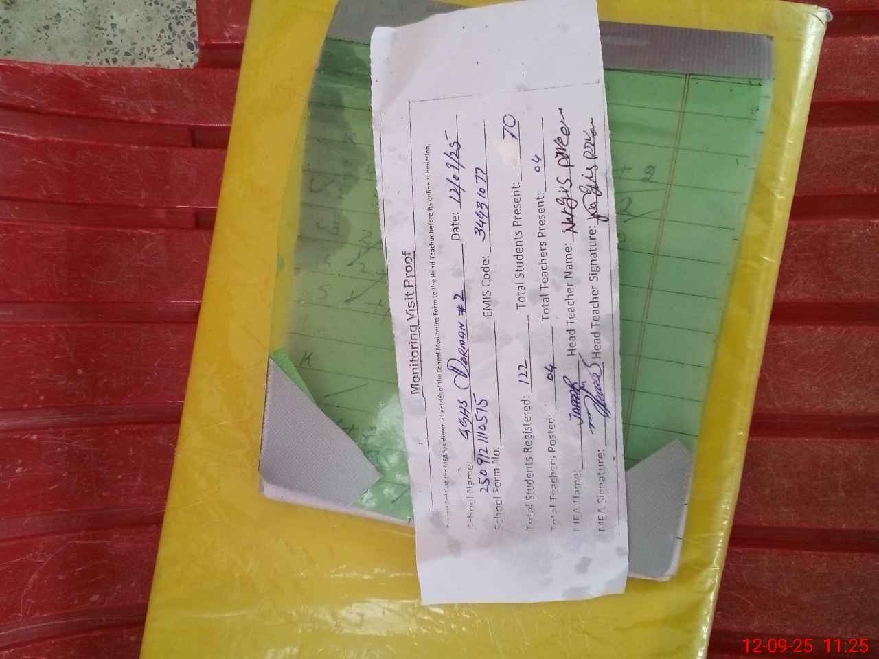 | Attendance Register | Head Teacher | MEA with School | Visit Proof |