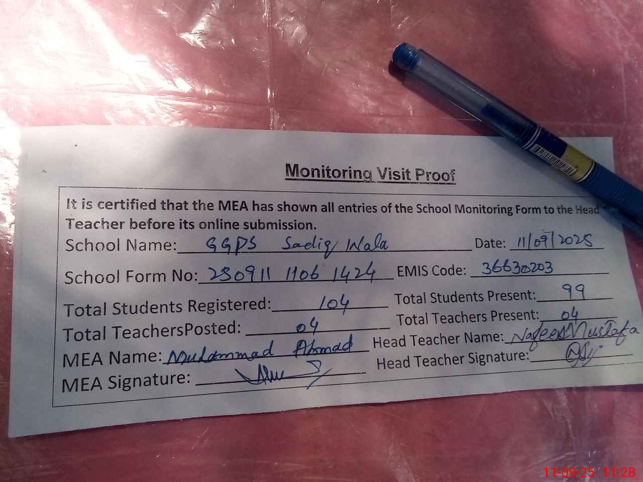 | EMIS Code: 36630203 | Name of School: GGPS SADIQ WALAL | |||