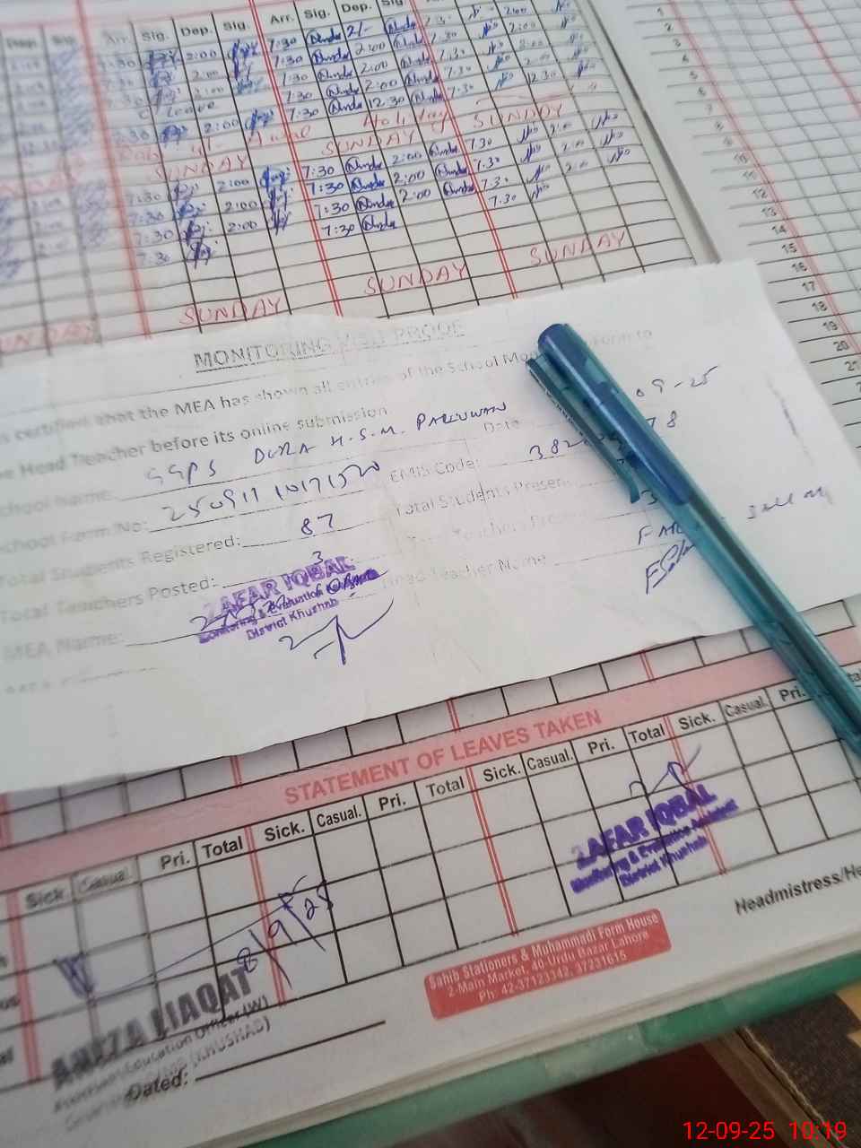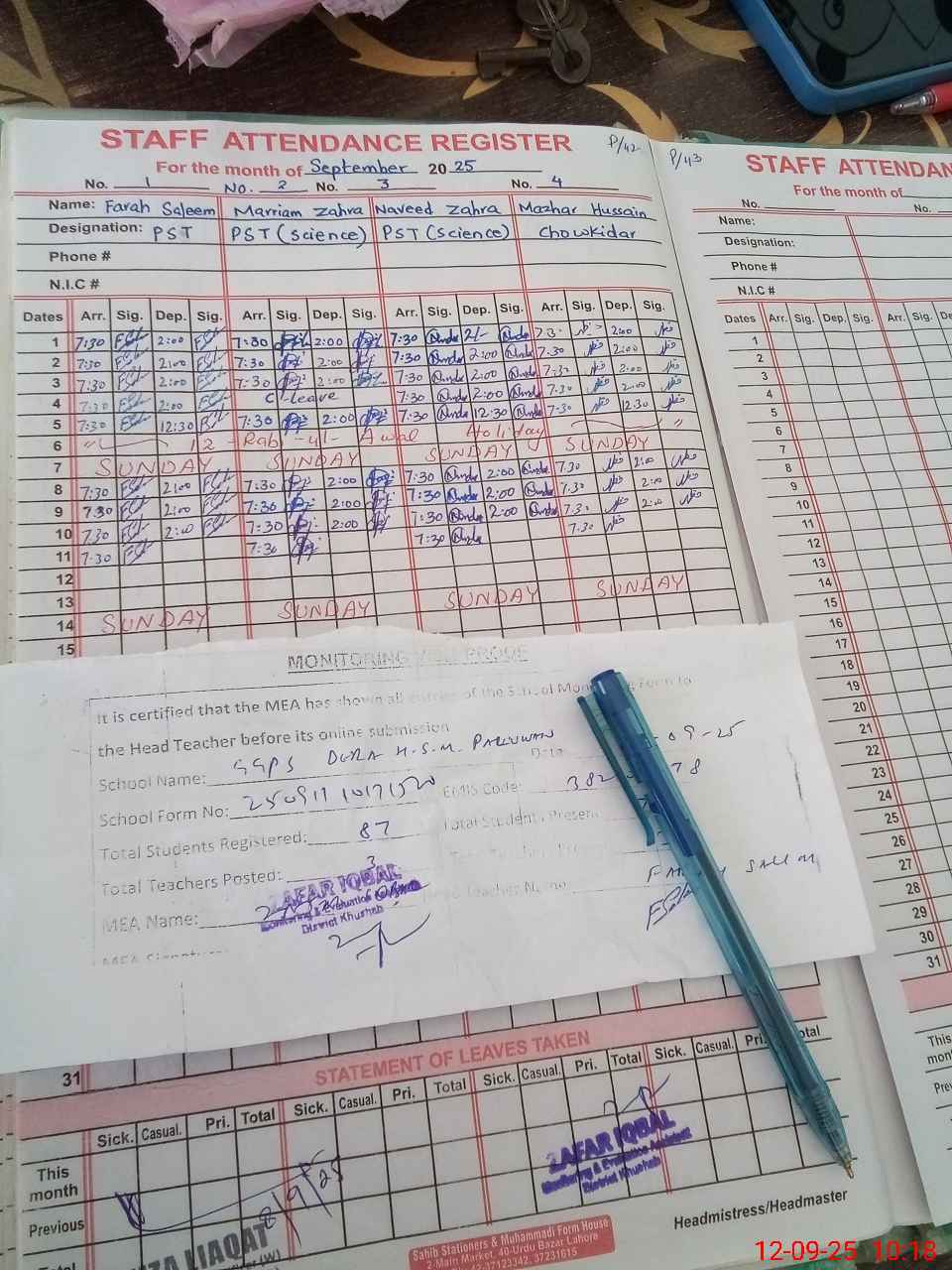 | Attendance Register | Head Teacher | MEA with School | Visit Proof |