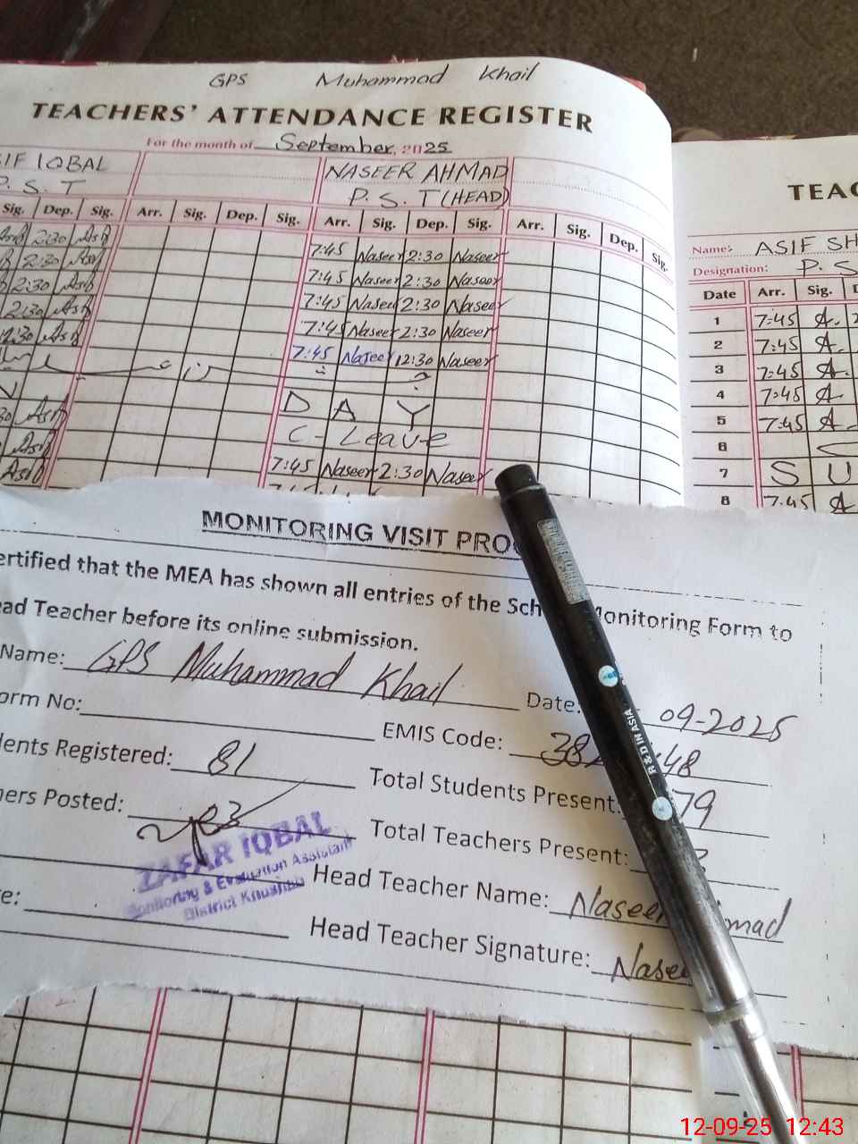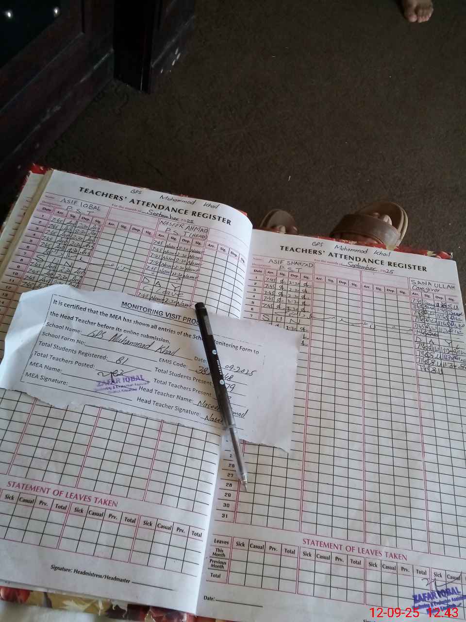 | Attendance Register | Head Teacher | MEA with School | Visit Proof |