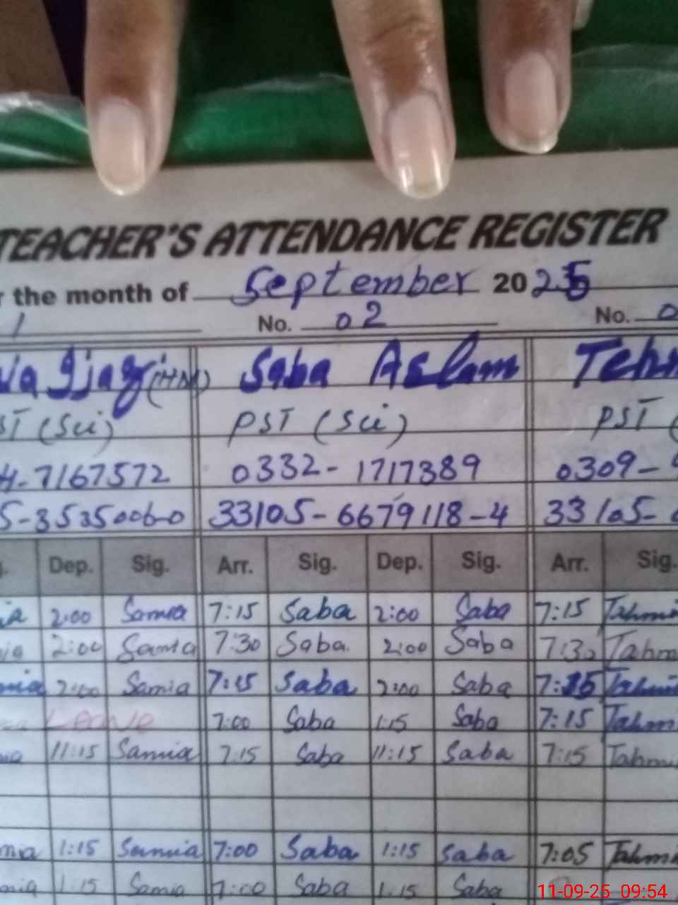 | Name: SA**** IJ**** Designation: (School Headmaster's/Headmistress's) PST Phone/Cell Number: 03**** |