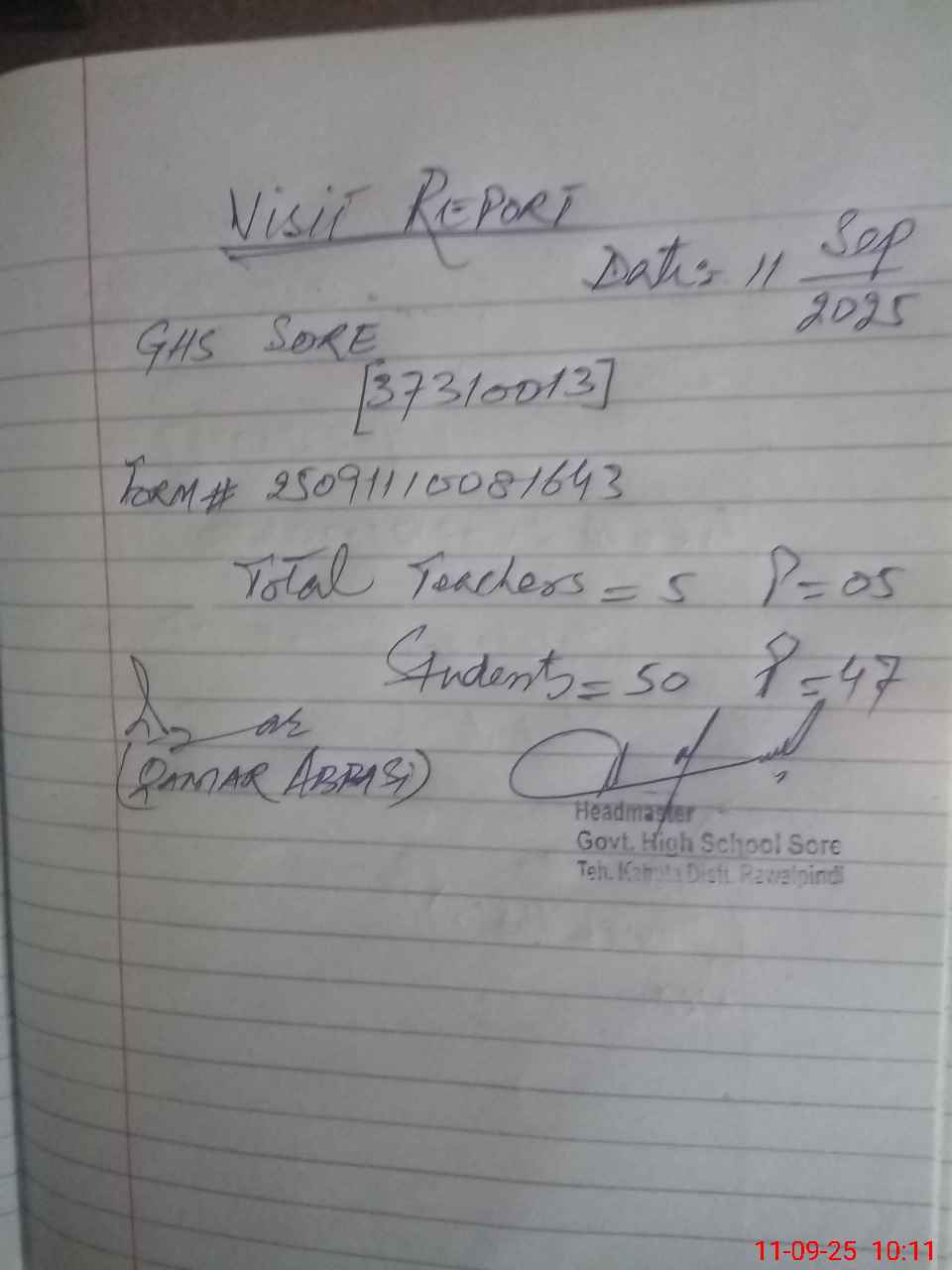 | Attendance Register | Head Teacher | MEA with School | Visit Proof |