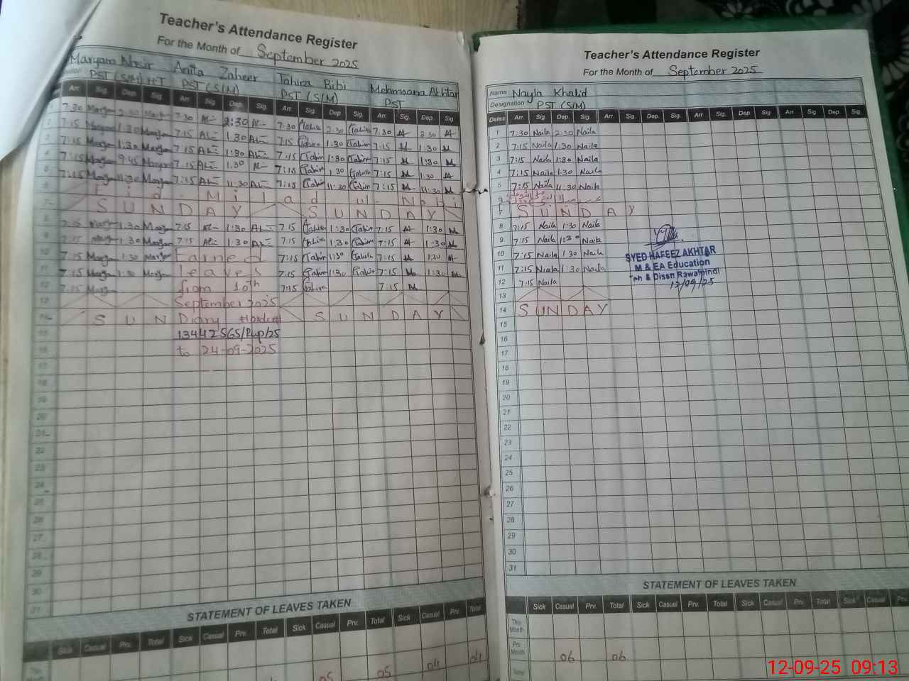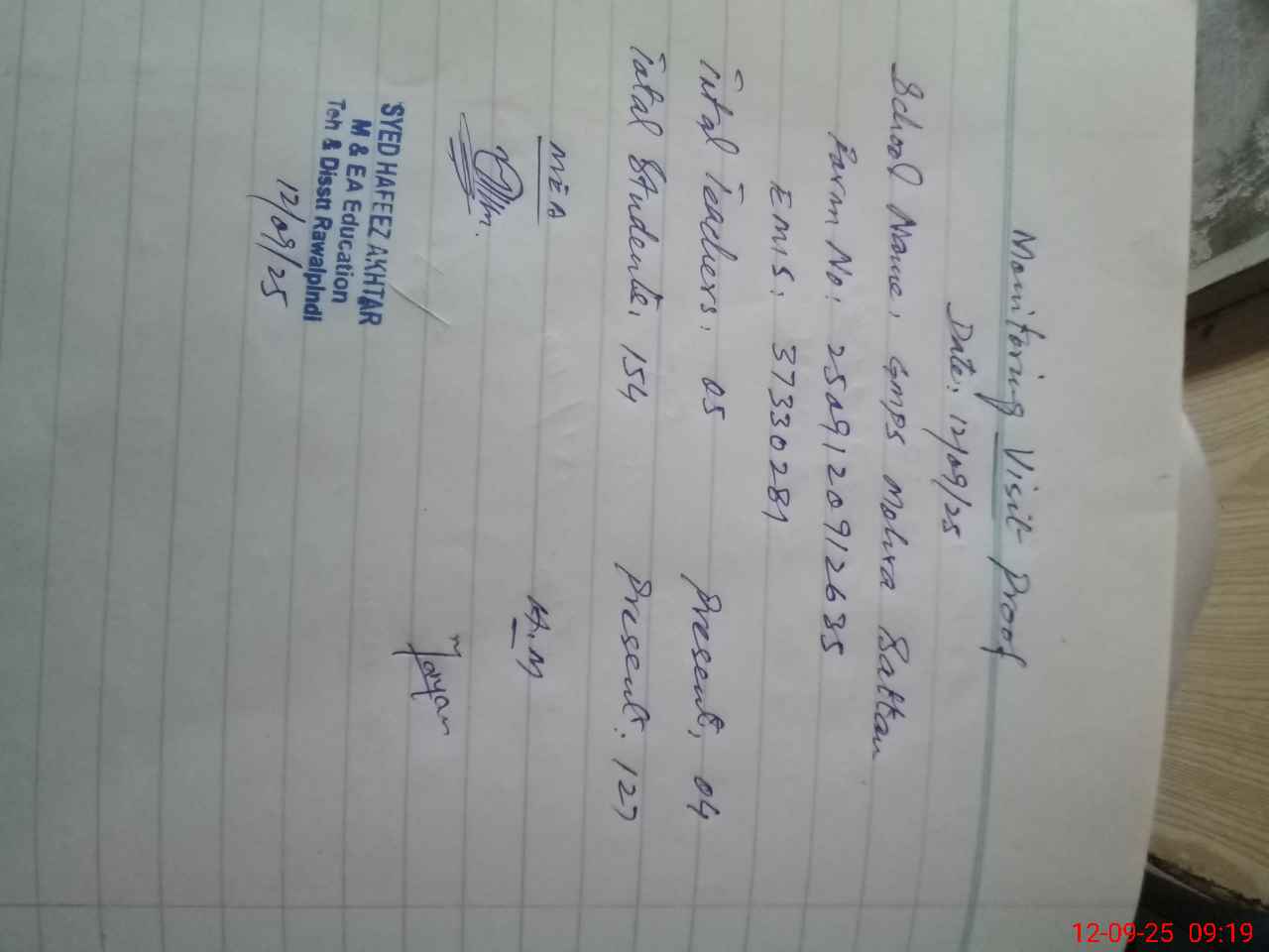 | Monitoring Date: 12-09-2025 | Start Time: 12-09-2025 08:53 AM | End Time: 12-09-2025 09:26 AM | Name of MEA: Sy**** Ha**** Ak**** | |