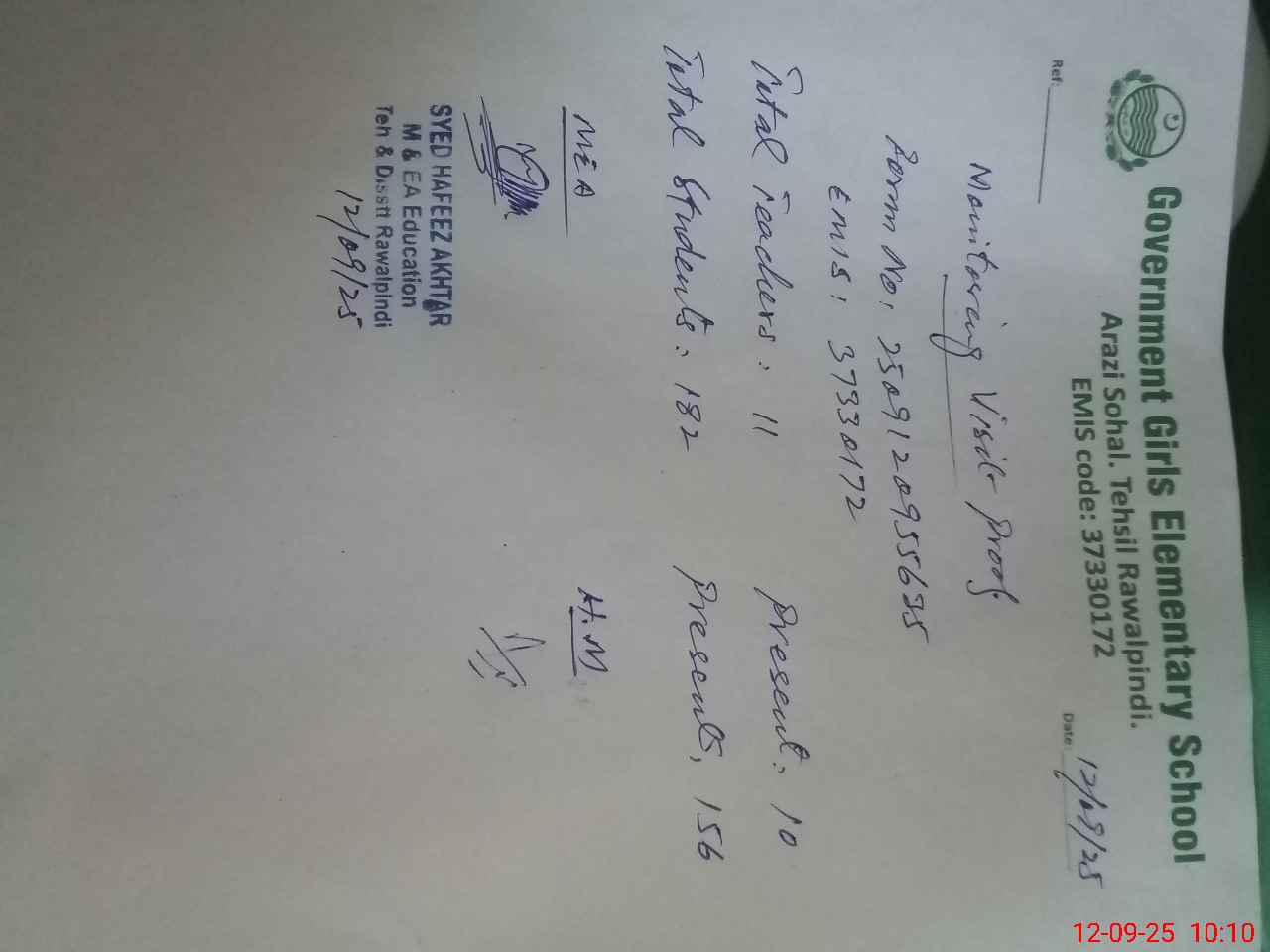 | Monitoring Date: 12-09-2025 | Start Time: 12-09-2025 09:33 AM | End Time: 12-09-2025 10:12 AM | Name of MEA: Sy**** Ha**** Ak**** | |