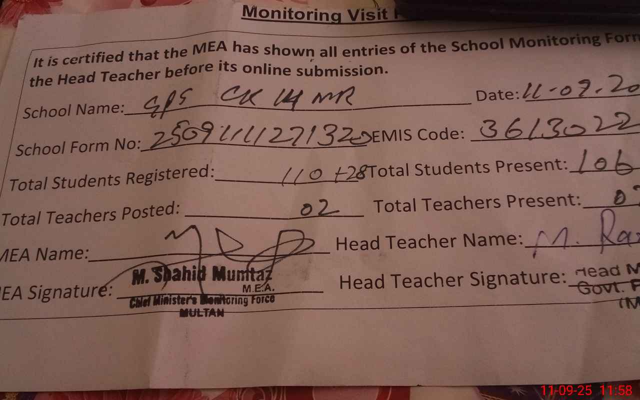 | EMIS Code: 36130227 | Name of School: GPS CHAK NO.14 MR P/O MAKHDOOM RASHID | |||