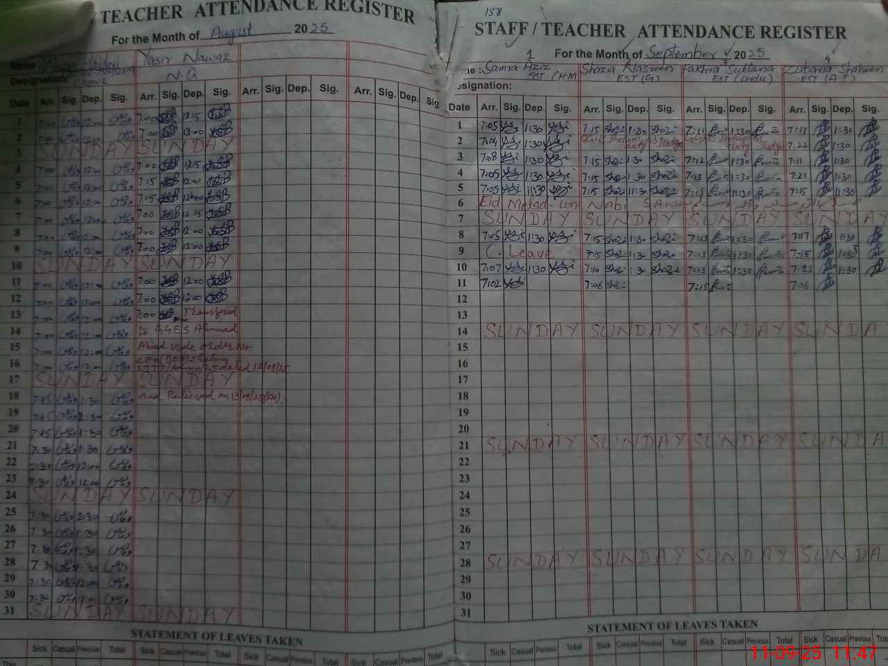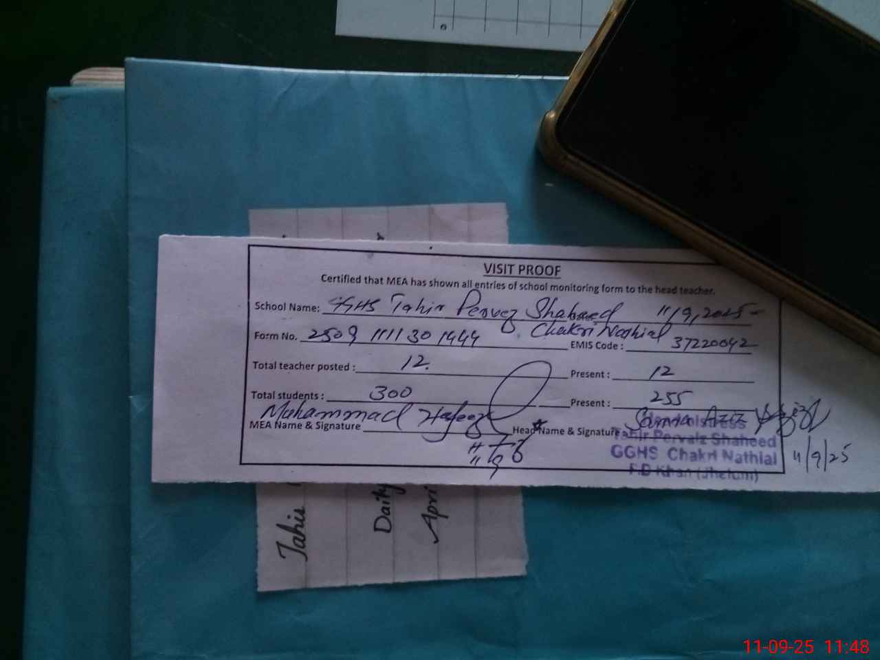 | Attendance Register | Head Teacher | MEA with School | Visit Proof |
