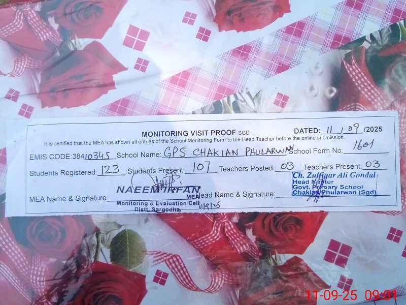 | EMIS Code: 38410345 | Name of School: GPS CHAKIAN PHULARWAN | |||
