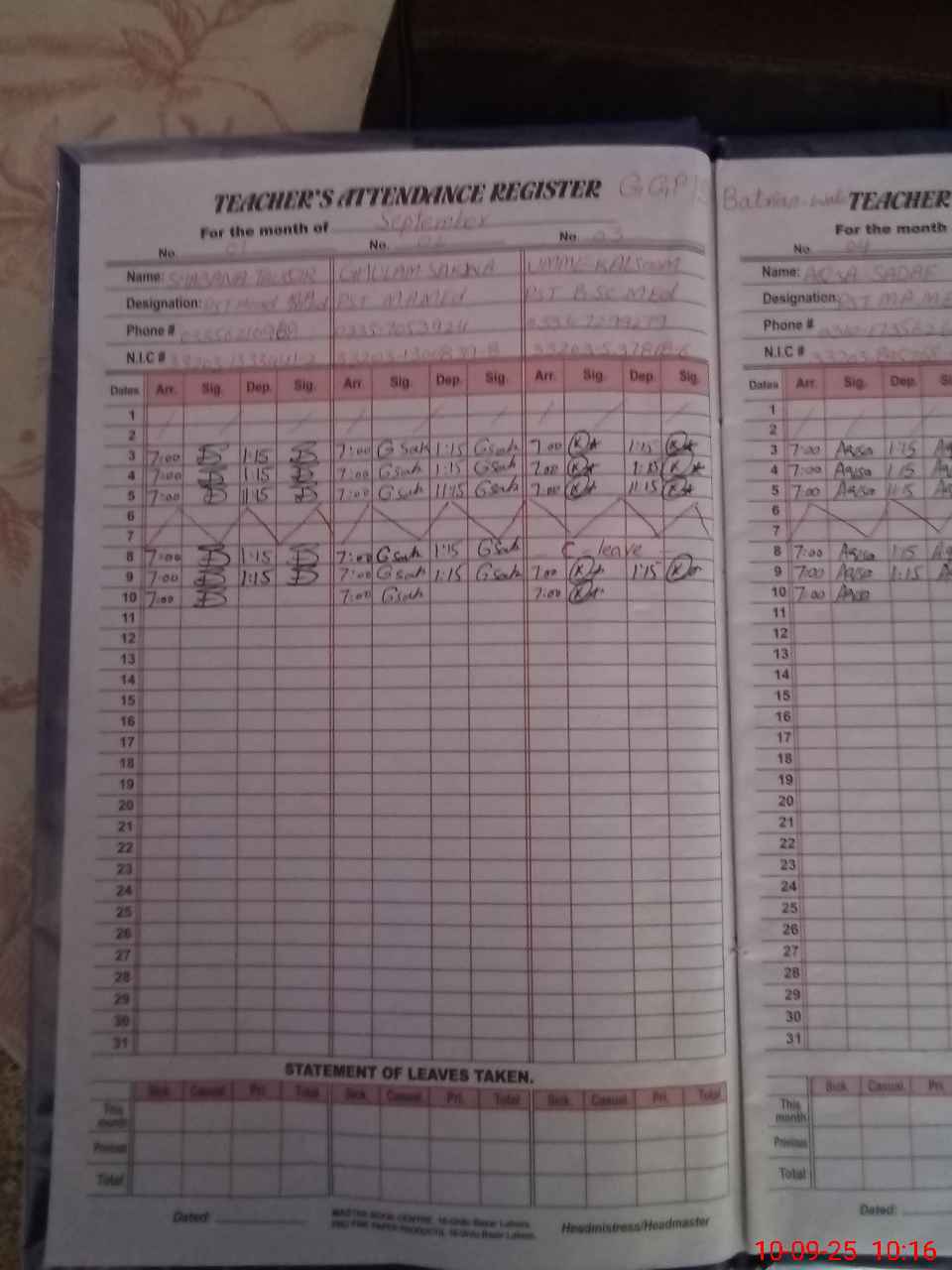 | Name: SH**** TO**** Designation: (School Headmaster's/Headmistress's) PST Phone/Cell Number: 03**** |