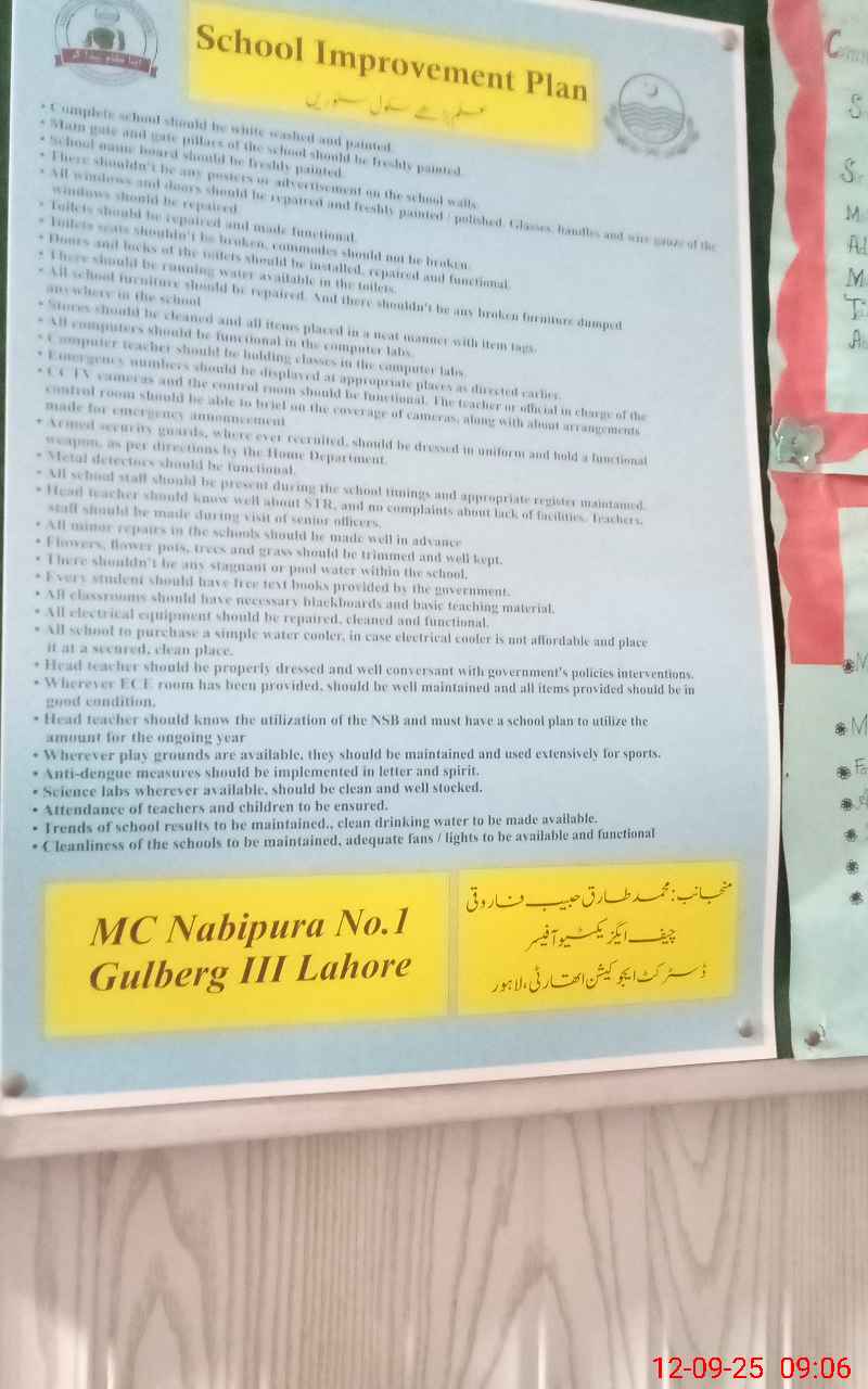 | EMIS Code: 35210863 | Name of School: GPS NABI PURA GULBERG-III (EX-MCL) | |||