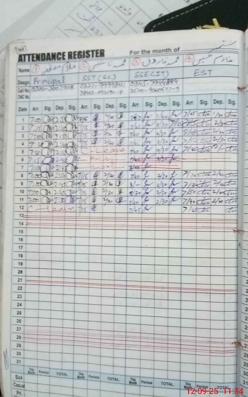| 36**** | Gh**** Mu**** Ka**** | PRINCIPAL | Regular | 0 | 0 | 0 | 0 | 0 | 0 | 0 | 0 | 0 | Casual |