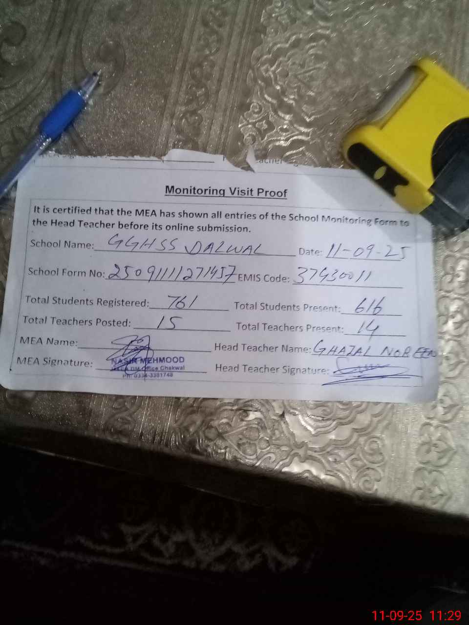 | EMIS Code: 37430011 | Name of School: GGHSS DALWAL | |||