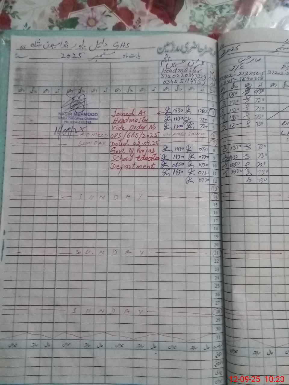 | Name: Im**** Hu**** An**** Designation: (School Headmaster's/Headmistress's) Headmaster Phone/Cell Number: 03**** |