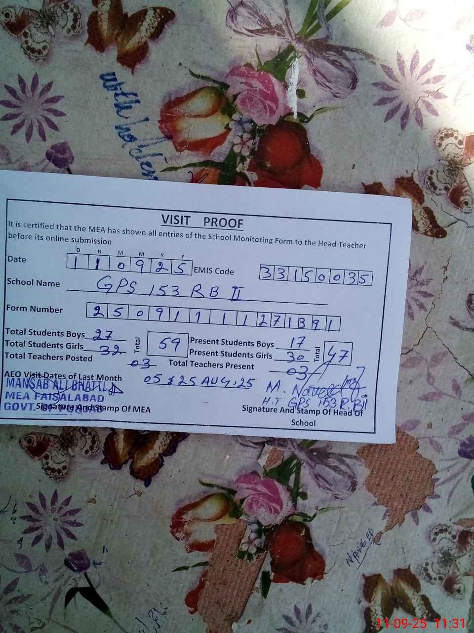 | EMIS Code: 33150035 | Name of School: GPS 153 RB II | |||