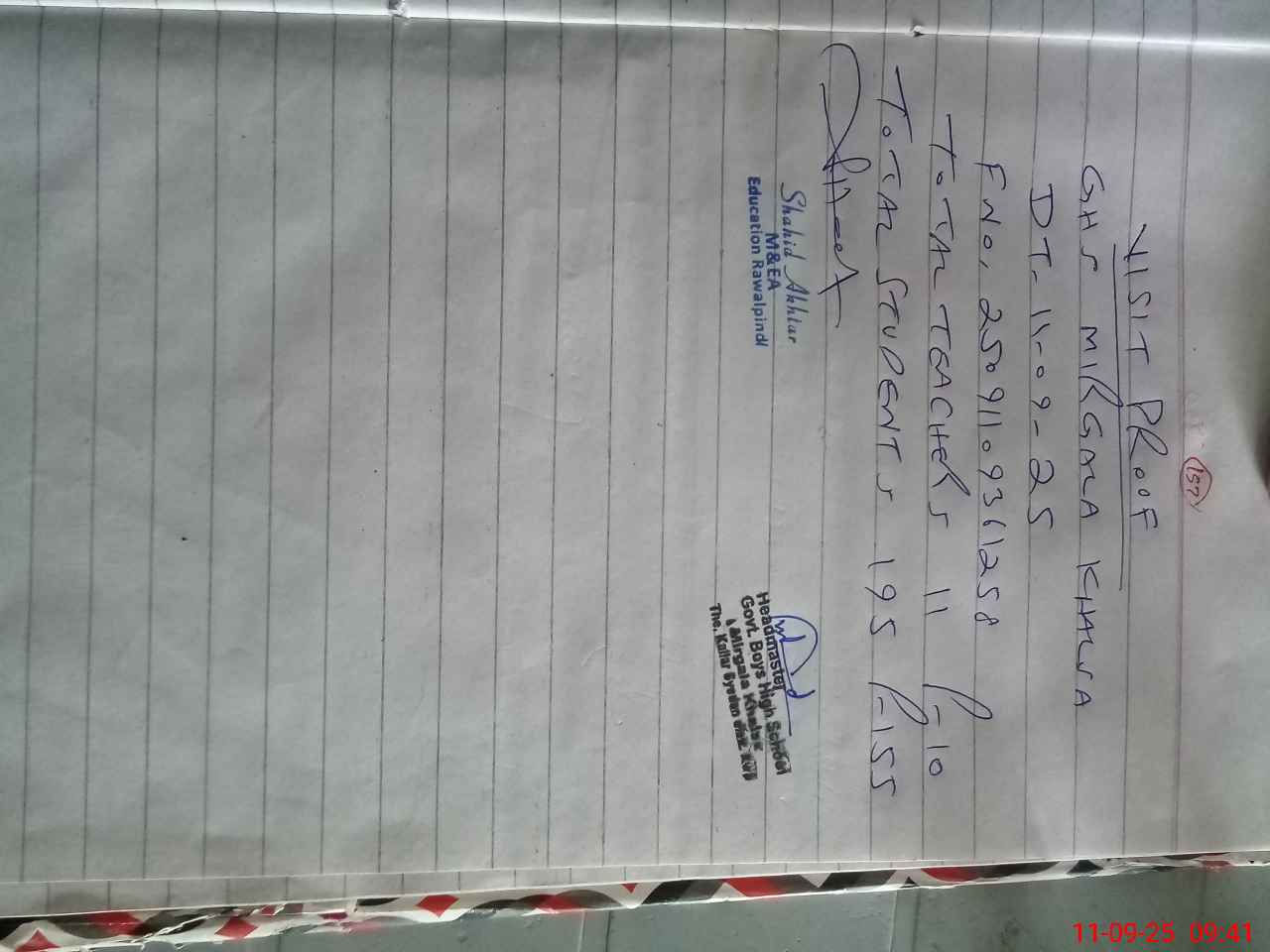 | Attendance Register | Head Teacher | MEA with School | Visit Proof |