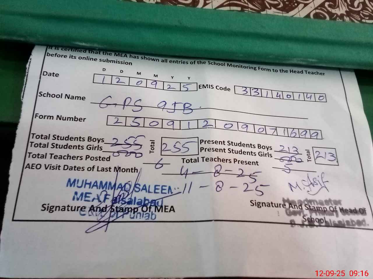 | EMIS Code: 33140140 | Name of School: GES 9 JB | |||