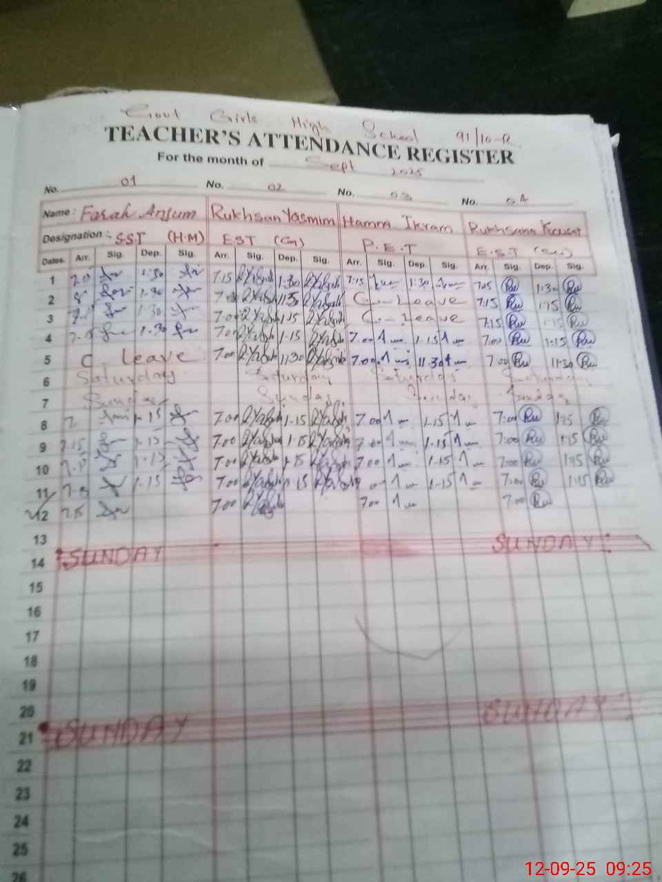 | 36**** | Ya**** | C4 | 0 | 0 | 0 | 0 | 0 | 0 | 0 | 0 | 0 | Exam Duty | |