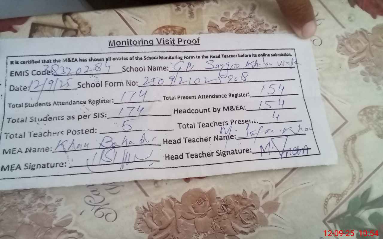 | Attendance Register | Head Teacher | MEA with School | Visit Proof |