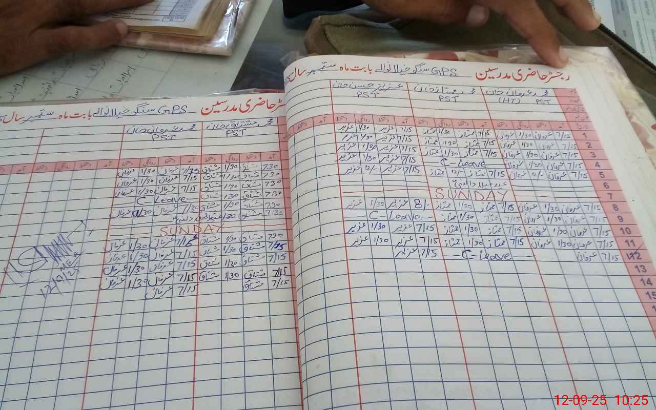 | CNIC | Full Name | Designation | R/C | Absence During Last Calender Month |