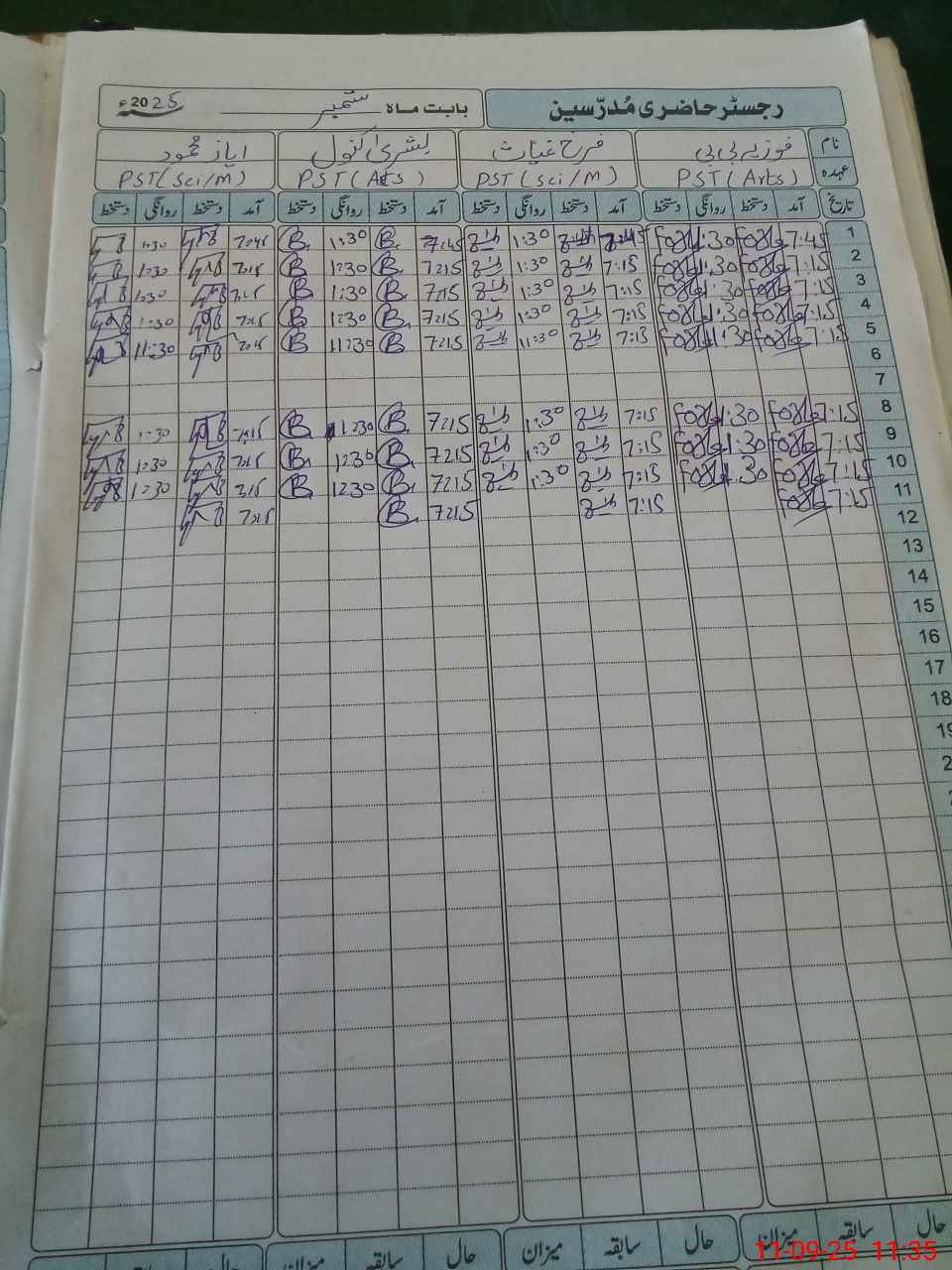 | CNIC | Full Name | Designation | R/C | Absence During Last Calender Month |