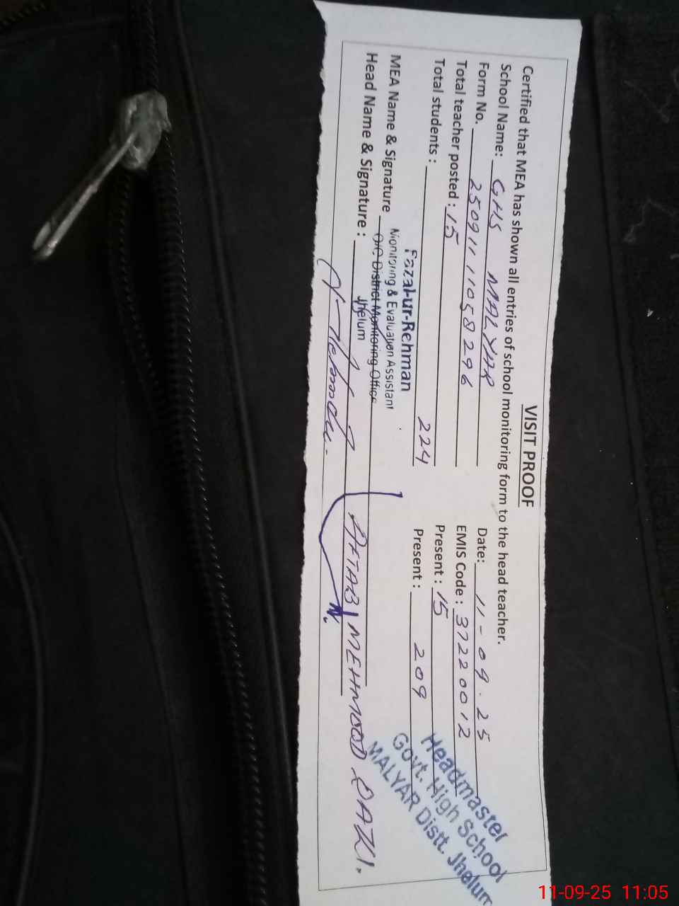 | EMIS Code: 37220012 | Name of School: GHS MALYAR | |||