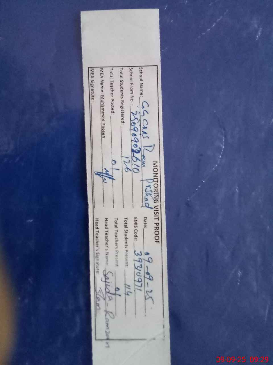 | EMIS Code: 39310971 | Name of School: GGCMS RAM PRASHAD | |||