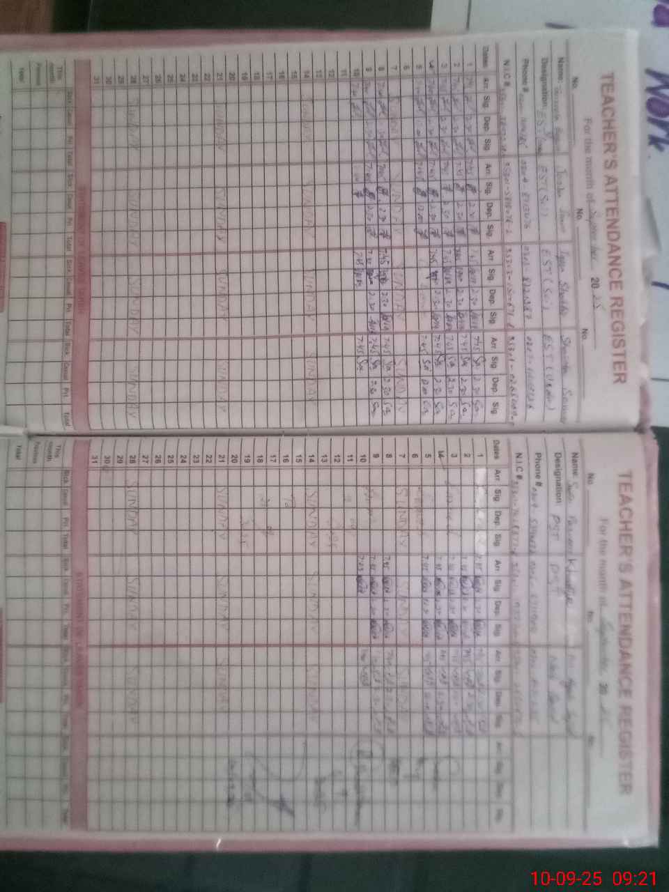 | Name: Ta**** Be**** Designation: (School Headmaster's/Headmistress's) EST Phone/Cell Number: 03**** |
