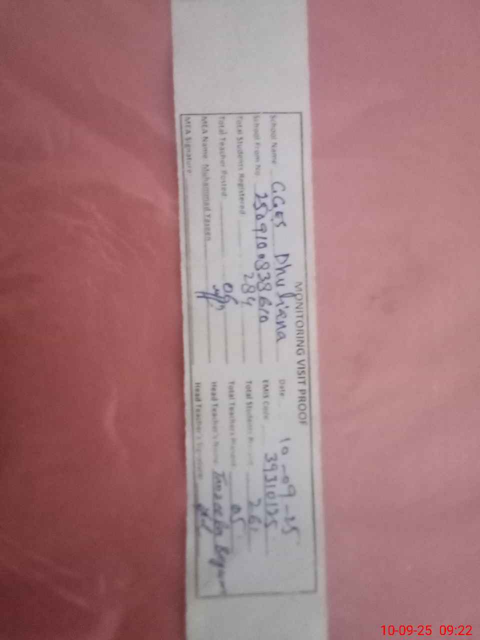 | Monitoring Date: 10-09-2025 | Start Time: 10-09-2025 08:38 AM | End Time: 10-09-2025 09:22 AM | Name of MEA: MU**** YA**** | |