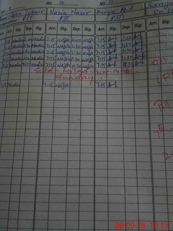 | CNIC | Full Name | Designation | R/C | Absence During Last Calender Month |