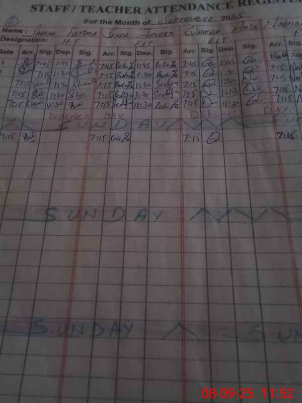 | Name: Sa**** Fa**** Designation: (School Headmaster's/Headmistress's) PST Phone/Cell Number: 03**** |