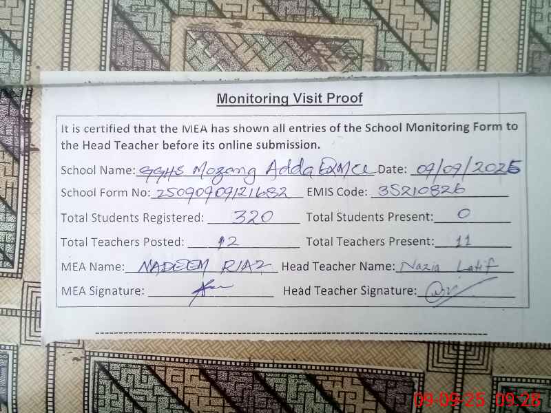 | EMIS Code: 35210826 | Name of School: GGHS MOZANG ADDA (EX-MCL) | |||